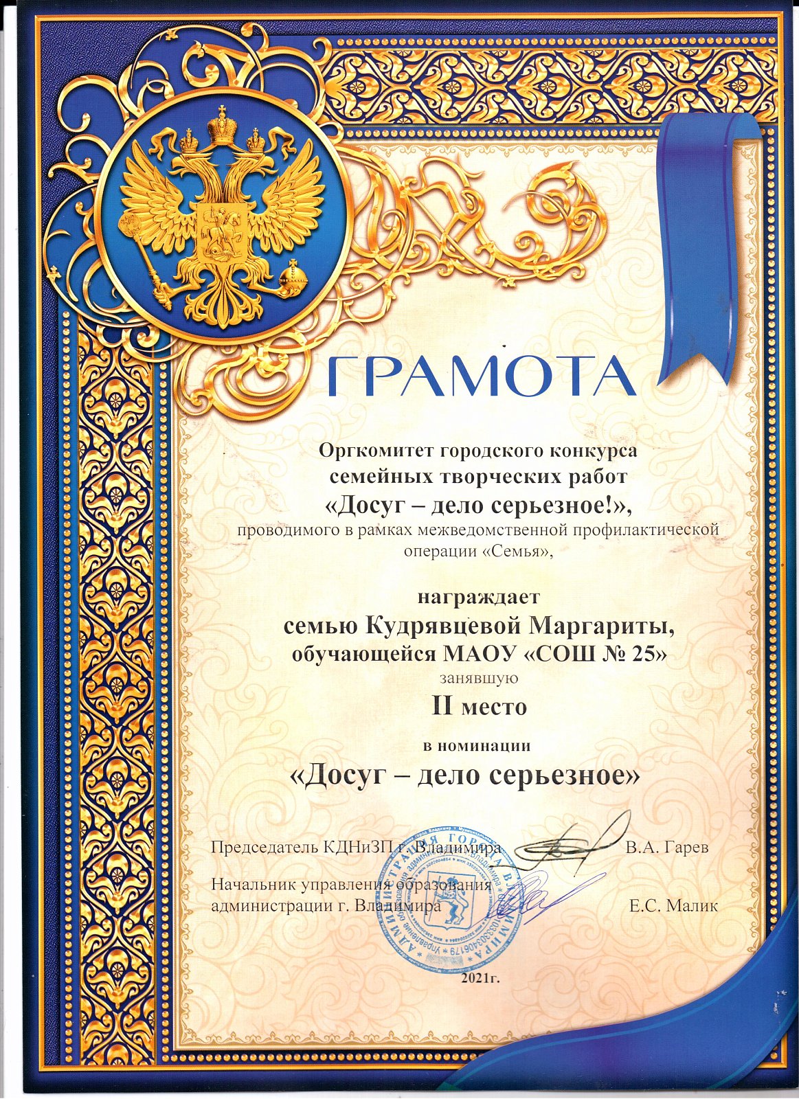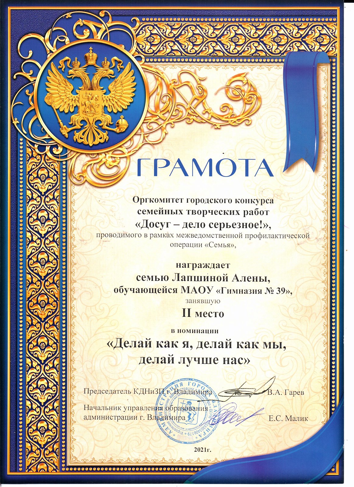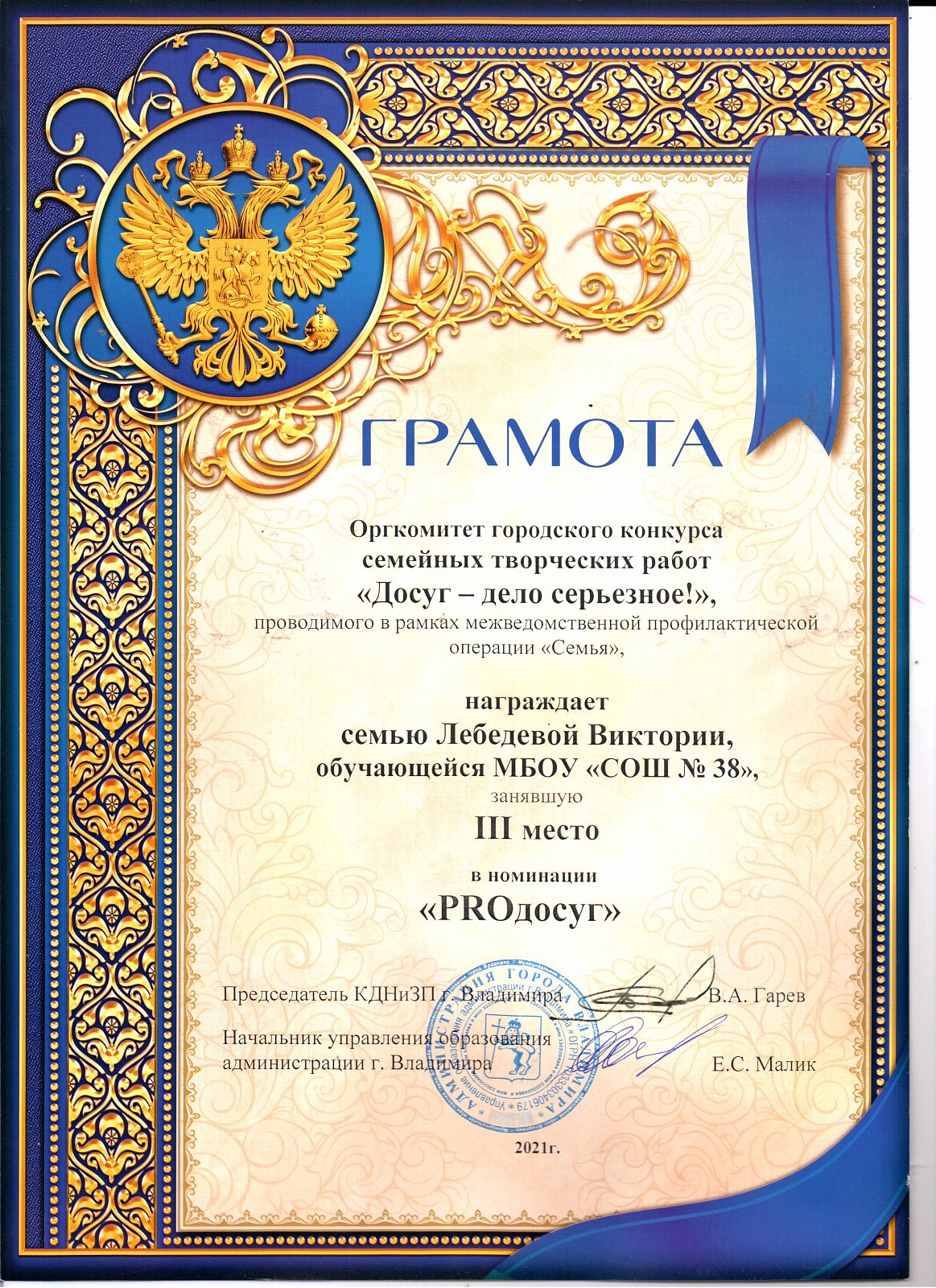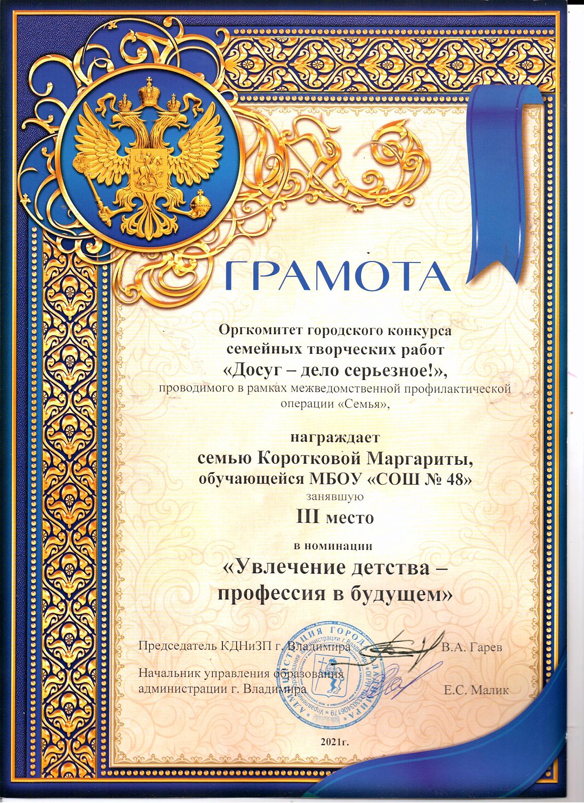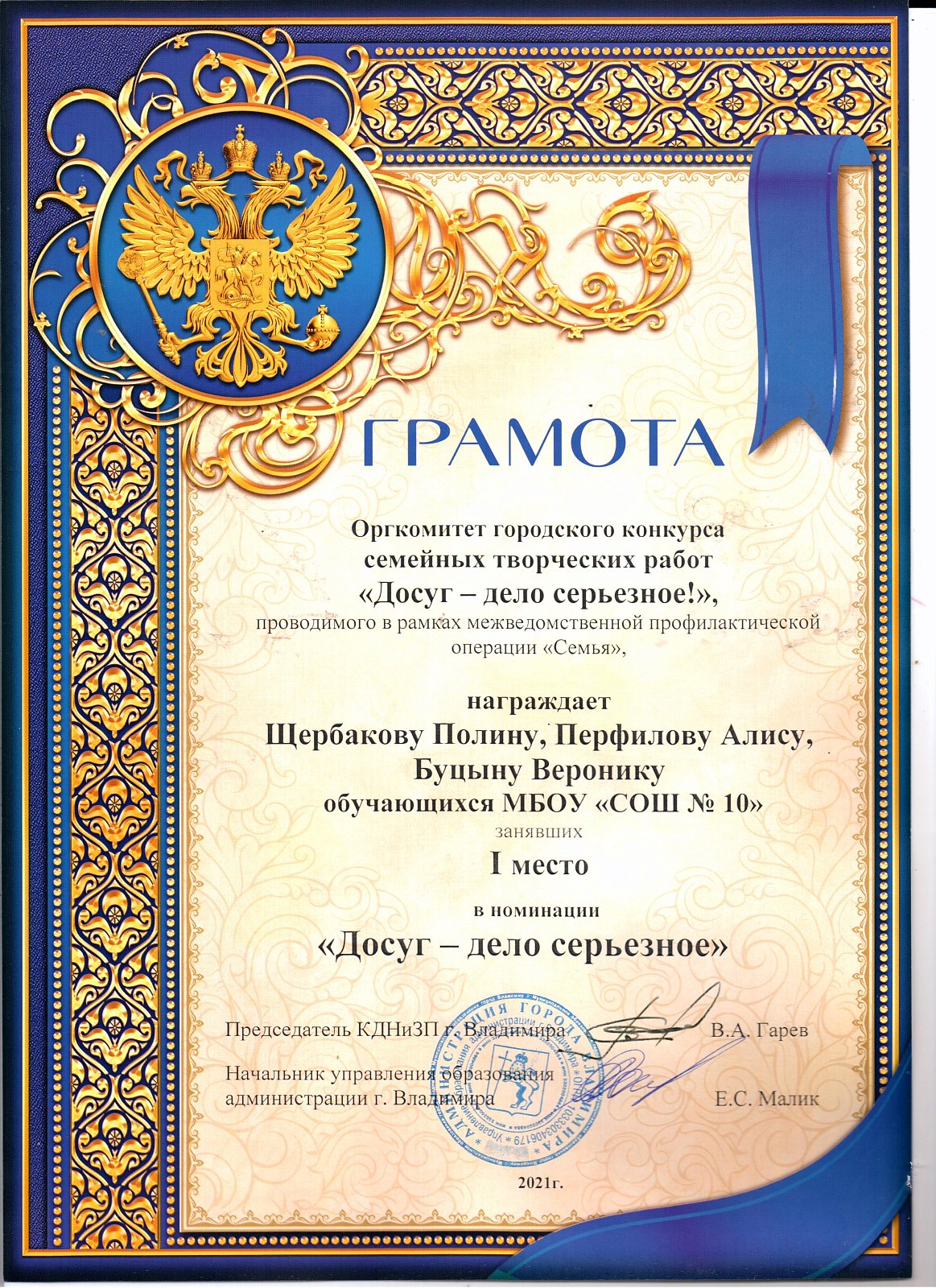 Подведены итоги городского конкурса семейных творческих работ «Досуг – дело серьезное!» в рамках проведения городской тематической правовой декады «Дети России33».