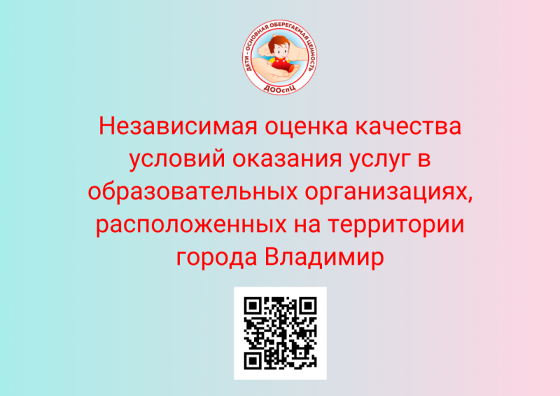 Просим принять вас участие в независимой оценке качества условий осуществления образовательной деятельности в организациях, расположенных на территории города Владимира, в том числе МБУДО "ДООспЦ"