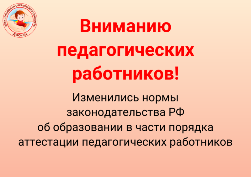 Управление образования обращает внимание на изменение норм законодательства Российской Федерации об образовании в части порядка аттестации педагогических работников организации, осуществляющих образовательную деятельность.