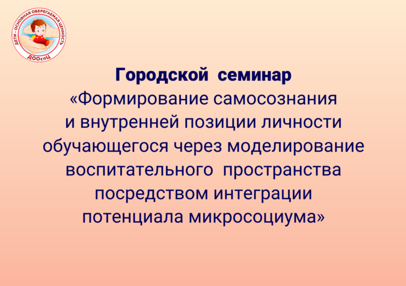 Городской семинар «Формирование самосознания и внутренней позиции личности обучающегося через моделирование воспитательного пространства посредством интеграции потенциала микросоциума»