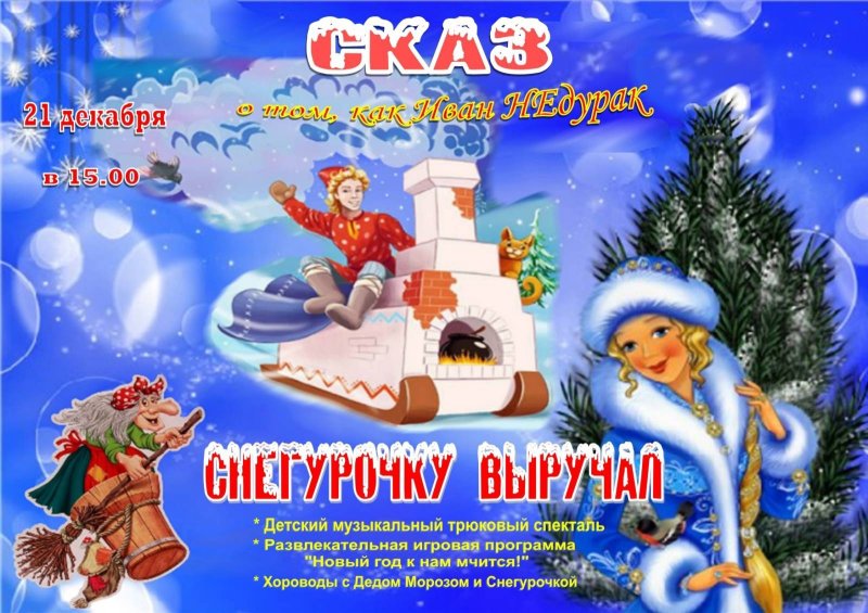 Мы рады пригласить ребят на детский музыкальный трюковый спектакль "Сказ о том, как Иван НЕдурак Снегурочку выручал".