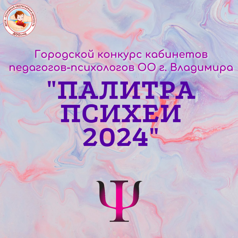 В соответствии с календарем городских и массовых мероприятий на 2023-2024 учебный год МБУДО "ДООспЦ" при поддержке Управления образования и молодежной политики администрации г. Владимира проводит городской конкурс кабинетов педагогов-психологов "Палитра Психеи - 2024".