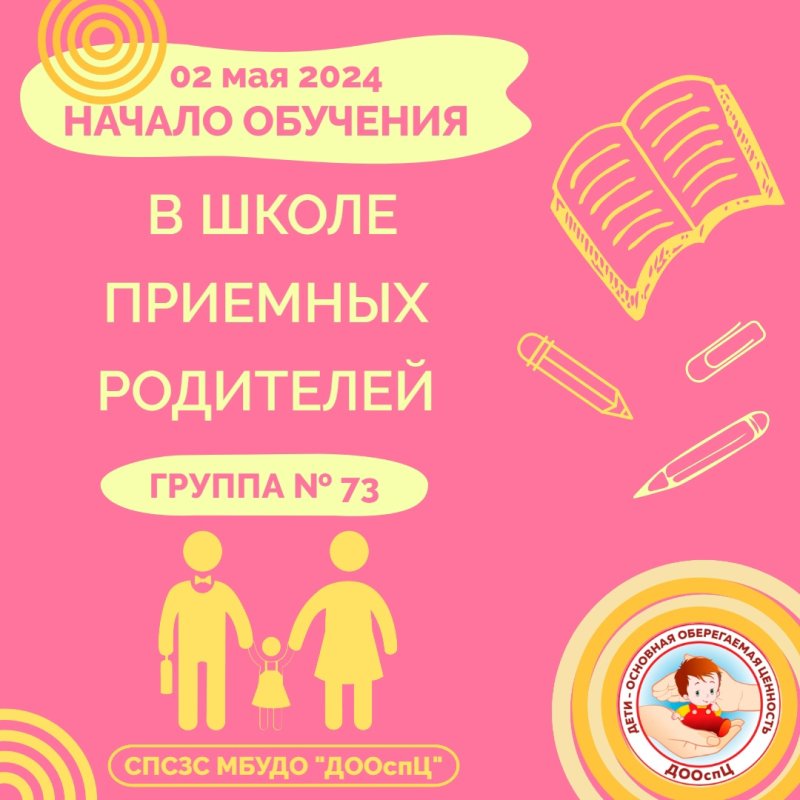 02 мая 2024 года начинает свою работу группа подготовки кандидатов, желающих принять в свою семью на воспитание ребенка, оставшегося без попечения кровных родителей ШПР № 73.