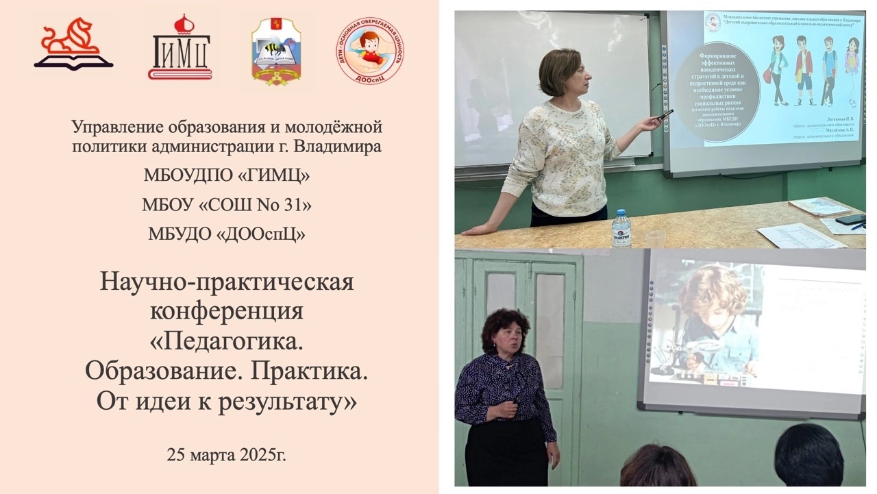 25 марта на базе МБОУ «СОШ» 31 состоялась муниципальная научно-практическая конференция педагогических работников «Педагогика. Образование. Практика. От идеи к результату». Конференция проводилась по инициативе МБОУДПО «ГИМЦ» при поддержке Управления образования и молодежной политики г. Владимира.