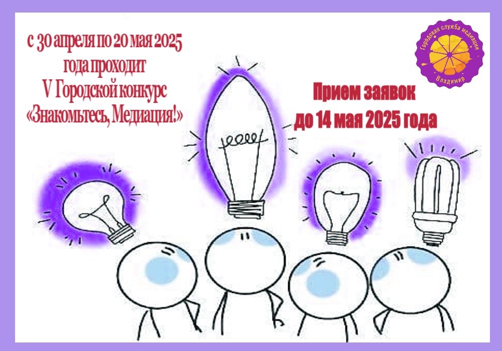 Напоминаем, что с 30 апреля по 20 мая 2025 года проходит V Городской конкурс «Знакомьтесь, Медиация!», организованный Городской службой медиации ДООспЦ.