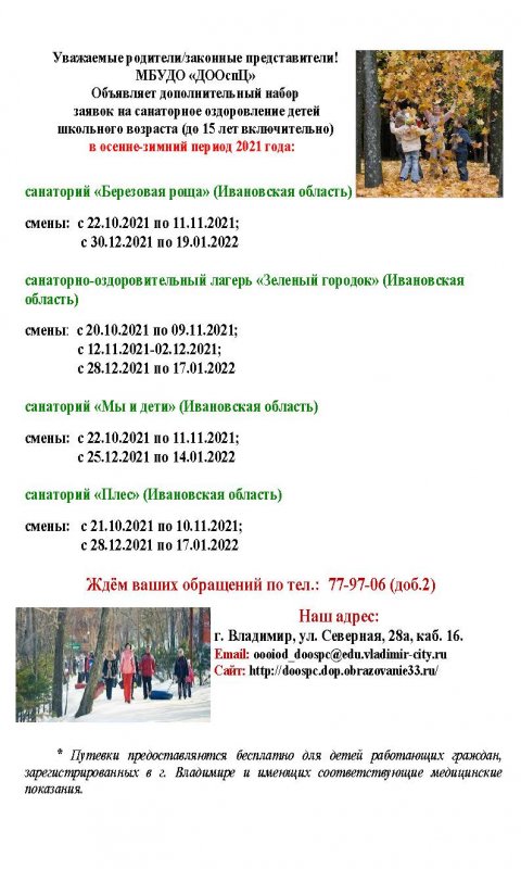 Оздоровительная кампания 2021 (осень - зима)