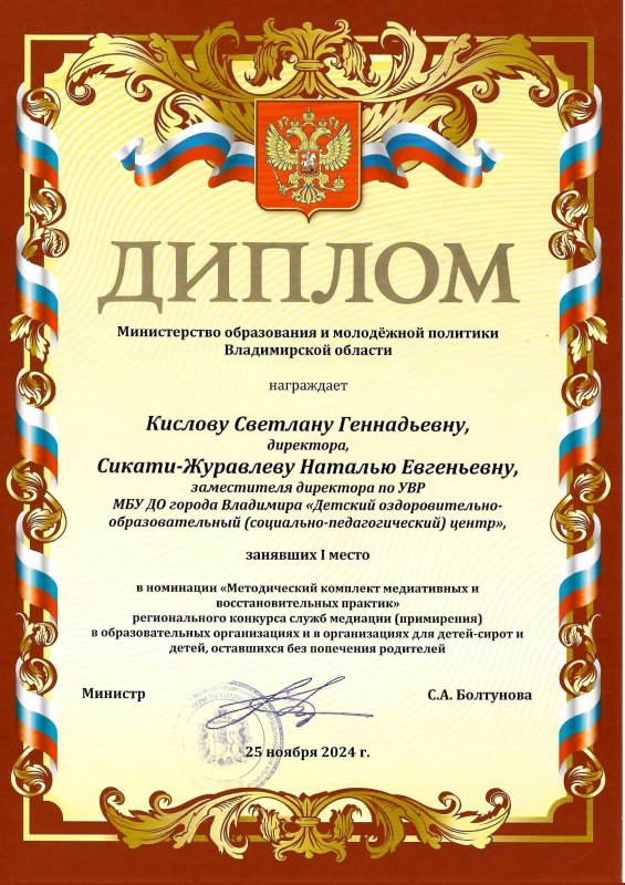 Диплом Министерства образования и молодежной политики