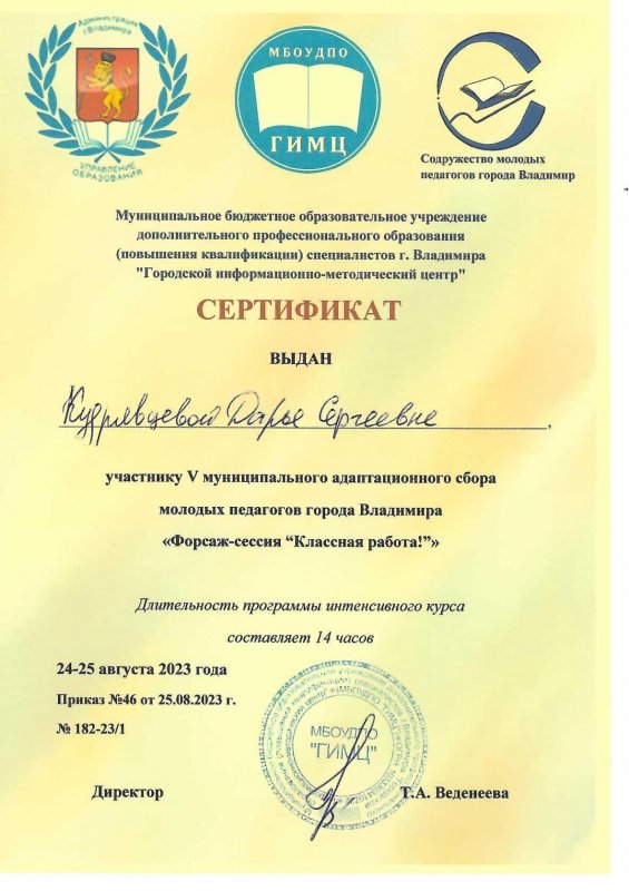 Сертификат Кудрявцевой Д.С.