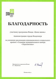 Благодарность от ГАУ ВО "Центр психолого-педагогической, медицинской и социальной помощи"