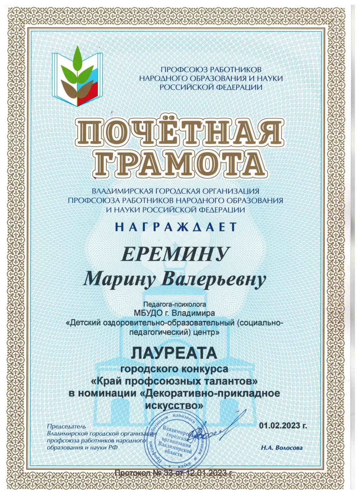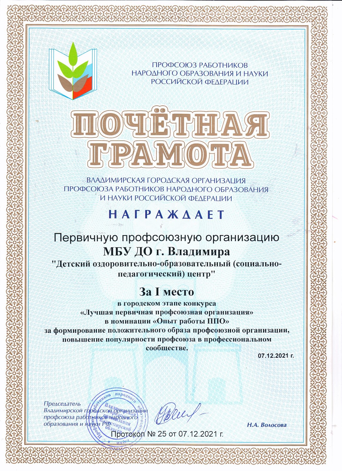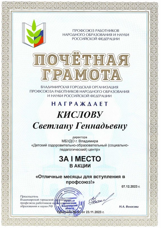 Достижения первичной профсоюзной организации МБУДО "ДООСПЦ"