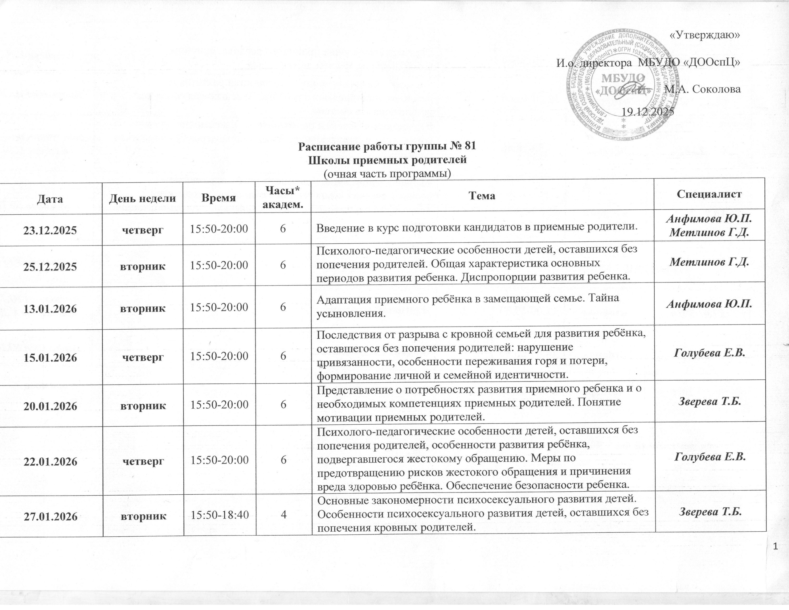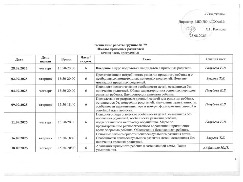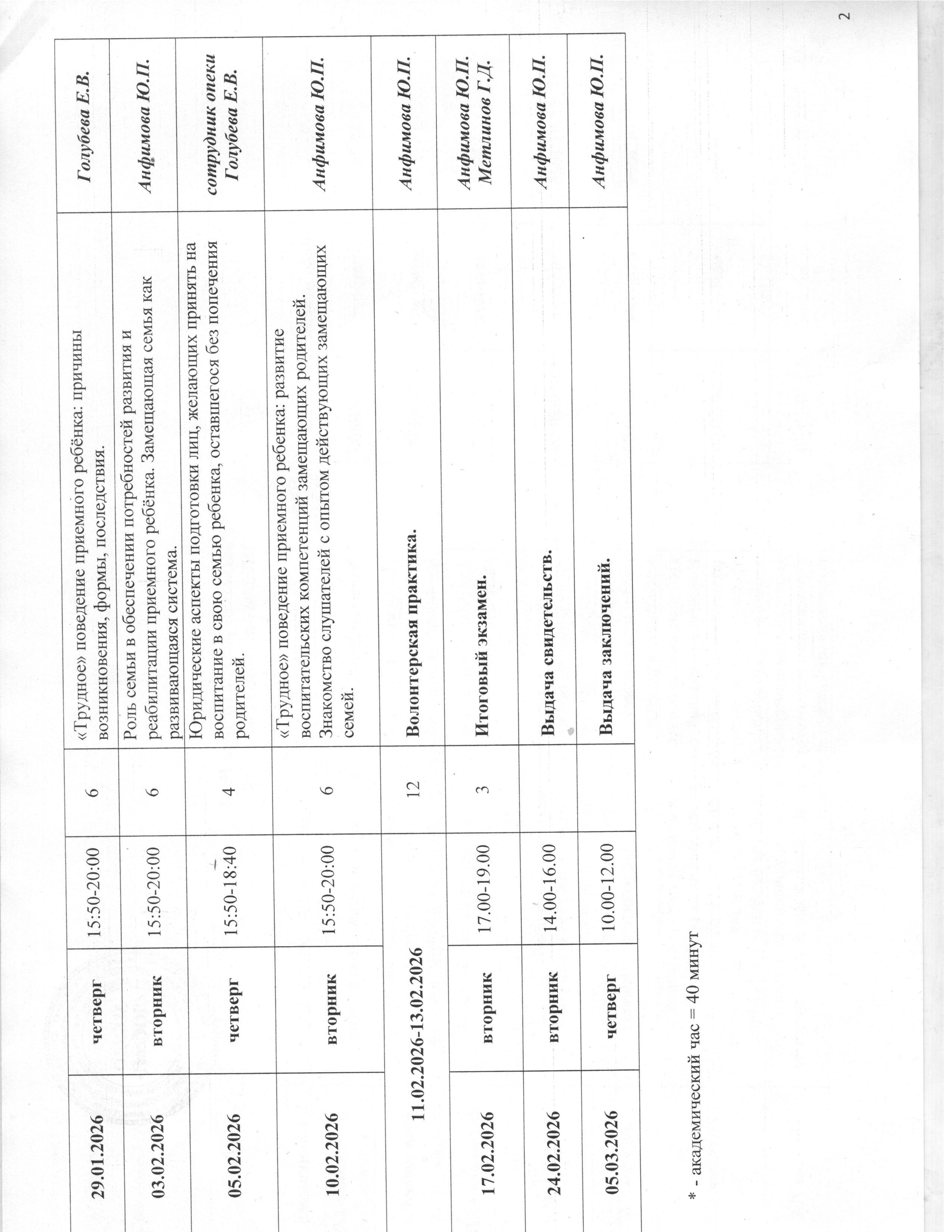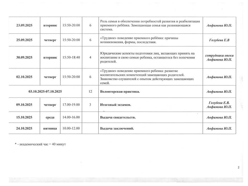 Учебно-тематический план по Программе Владимирской области подготовки лиц, желающих принять на воспитание в свою семью ребенка, оставшегося без попечения родителей
